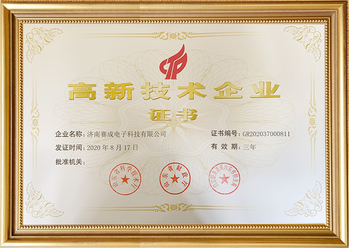“新突破、新征程”,4月6日,濟南賽成儀器喜迎佳訊,收到由山東省科學技術(shù)廳、山東省財政廳、國家稅務總局山東省稅務局聯(lián)合頒發(fā)的《高新技術(shù)企業(yè)證書》,證書編號:GR202037000811 。榮譽的獲得標志著濟南賽成儀器由此正式邁入高新技術(shù)企業(yè)行列,這是賽成儀器重視科技研發(fā),堅持通過核心科技提升競爭力的結(jié)果。